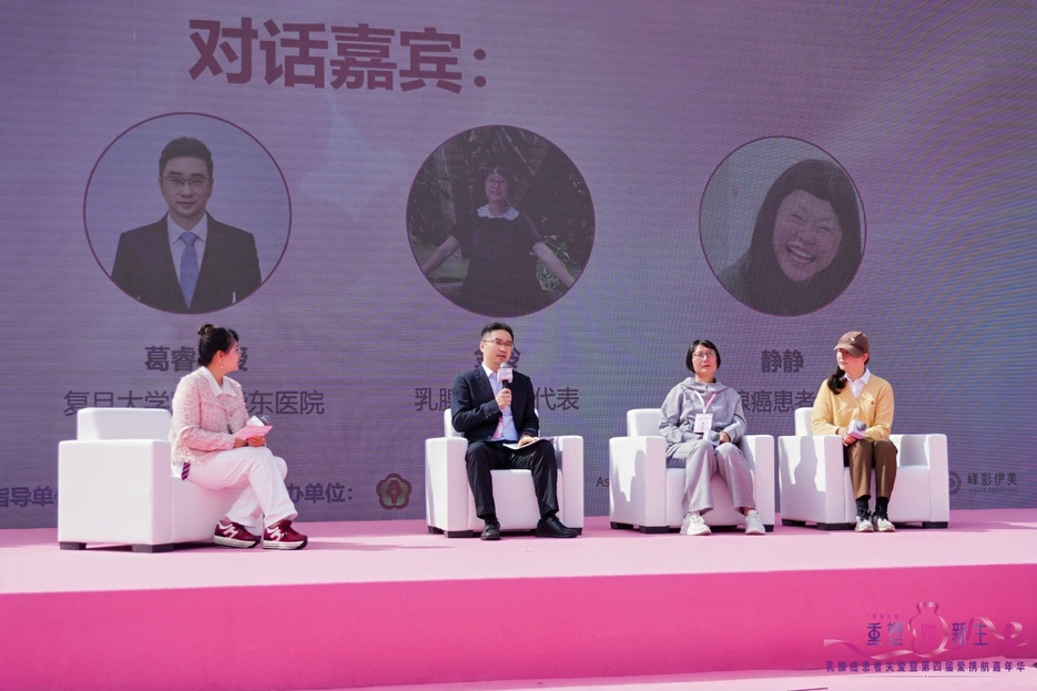 在“重塑新生,共筑粉红希望”医患对话环节,葛睿教授与两位乳腺癌患者代表围绕治疗及康复中的实际问题展开深入交流,分享科学应对和心理支持的建议。