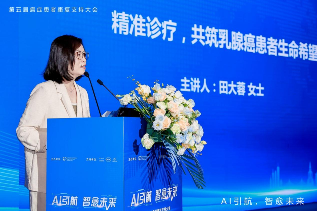 阿斯利康中国肿瘤业务乳腺癌事业部负责人田大蓉女士在发言中分享了阿斯利康作为医药企业在推动精准诊疗方面的实践与承诺。田大蓉强调,公司以患者为中心,通过AI技术加速新药研发,提升研发效率,并致力于在中国推出更多肿瘤创新药物。她指出,基因检测和AI数字病理是精准治疗的基石,未来将推动专病中心建设,提升诊疗水平。此外,阿斯利康持续开展患者教育与公益活动,传递规范、专业的疾病知识,助力患者实现高质量、有尊严的生存。