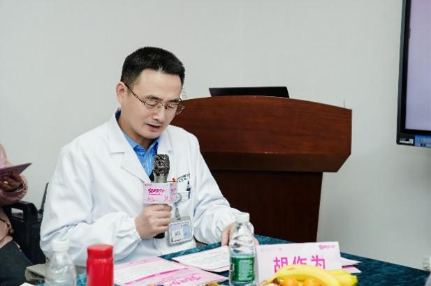 随后,本次活动的协办方代表、武汉市第一医院肿瘤中心负责人胡作为教授上台致辞。他深入阐述了乳腺癌治疗中“身心同步愈合”的重要性,并介绍了“健康有心”项目的背景与意义。胡教授指出,该项目不仅关注疾病治疗,更致力于通过专业手册、培训指导与线下活动,构建多方参与的支持体系,让患者在被理解、被陪伴中走向高质量康复。