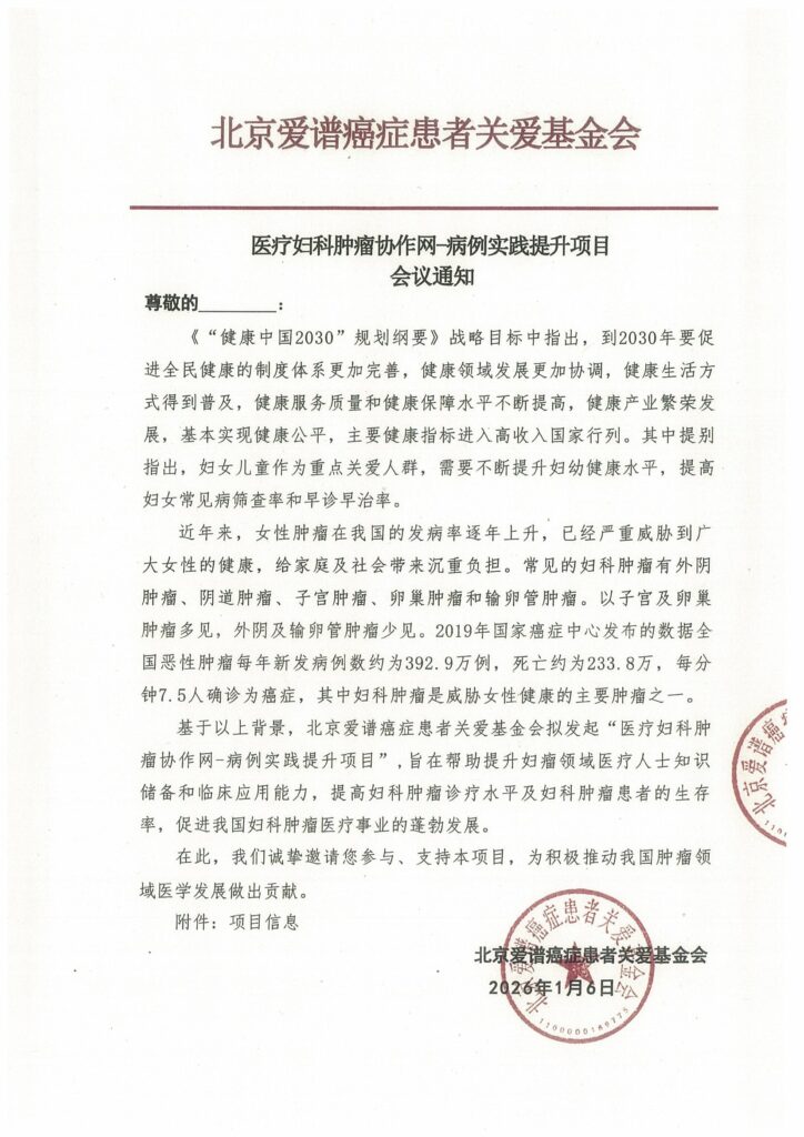 关于“医疗妇科肿瘤协作网-病例实践提升项目”的会议通知