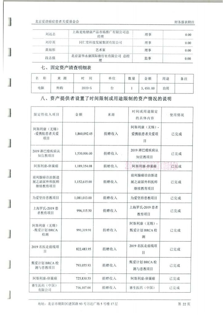 2019年度北京爱谱癌症患者关爱基金会审计报告