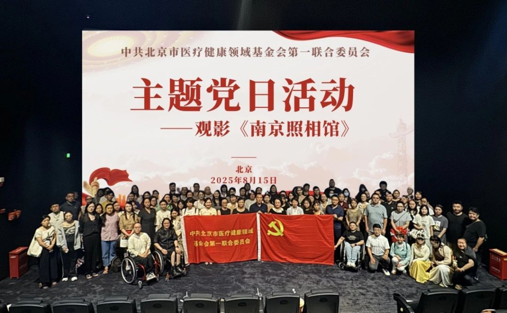 2025年8月15日,为纪念中国人民抗日战争暨世界反法西斯战争胜利80周年,在日本无条件投降80周年纪念日的特殊日子里,北京爱谱癌症患者关爱基金会党支部书记、常务副秘书长景锡南带领爱谱基金会全体党员,参加了中共北京市医疗健康领域基金会第一联合委员会组织的主题党日活动—观看重大历史题材影片《南京照相馆》。医联党委组织所属 18 个党支部的党员、入党积极分子、共青团员等,共计120多人观影。这不是普通的主题教育活动,而是一场穿越时空的历史对话。此次活动旨在让党员同志们铭记历史、缅怀先烈,从那段沉痛的民族苦难中汲取奋进力量,更好地践行医疗公益人的使命与担当,激励广大党员干部赓续红色血脉,铭记历史,勿忘国耻,砥砺前行,进一步增强党组织的凝聚力和战斗力!