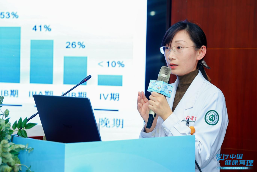 陆军军医大学第二附属医院(新桥医院)肿瘤科王中瑜教授在《肺癌的患者教育》专题分享中,系统阐述了从肺癌的早期识别与诊断、规范治疗方法到康复随访的全病程管理要点。通过临床实例与科学数据的结合,为现场观众厘清了肺癌防治中的关键认知节点,帮助患者及家属建立起科学、系统的疾病管理观念。