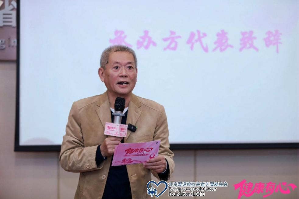 随后,中共福州市癌症康复协会支部委员会书记郑承周代表协会致辞。郑书记从协会长期服务患者的实践出发,阐述了心理康复在乳腺癌全程管理中的关键价值。他代表协办方介绍了“健康有心”项目落地福州的意义,强调协会将致力于整合本地资源,把项目提供的专业支持转化为可持续的暖心服务,真正成为患者康复路上的“心灵港湾”。